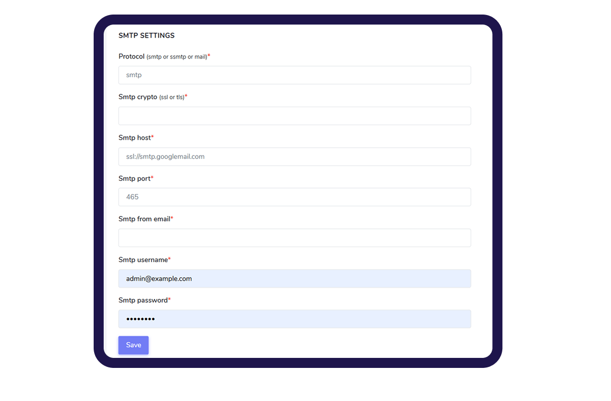 Academy LMS ensures reliable, professional email notification with Students, Instructors, and Admins through smart SMTP configuration.