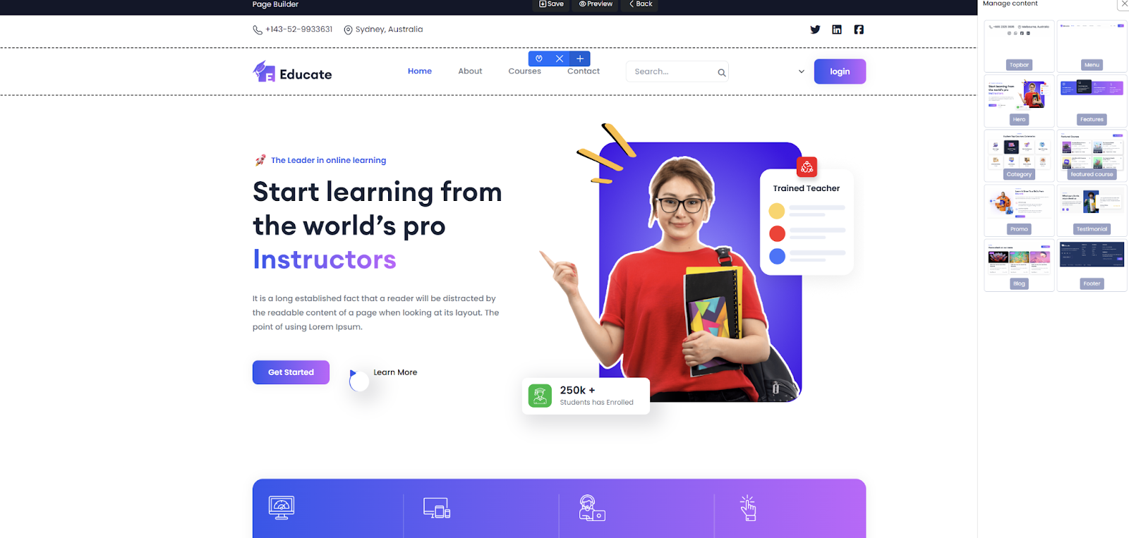 Create your own customized home pages in Academy LMS Laravel with the custom homepage builder feature. Easily design and manage multiple pages on the Academy LMS Laravel homepage, and choose exactly how you want the homepage to appear.