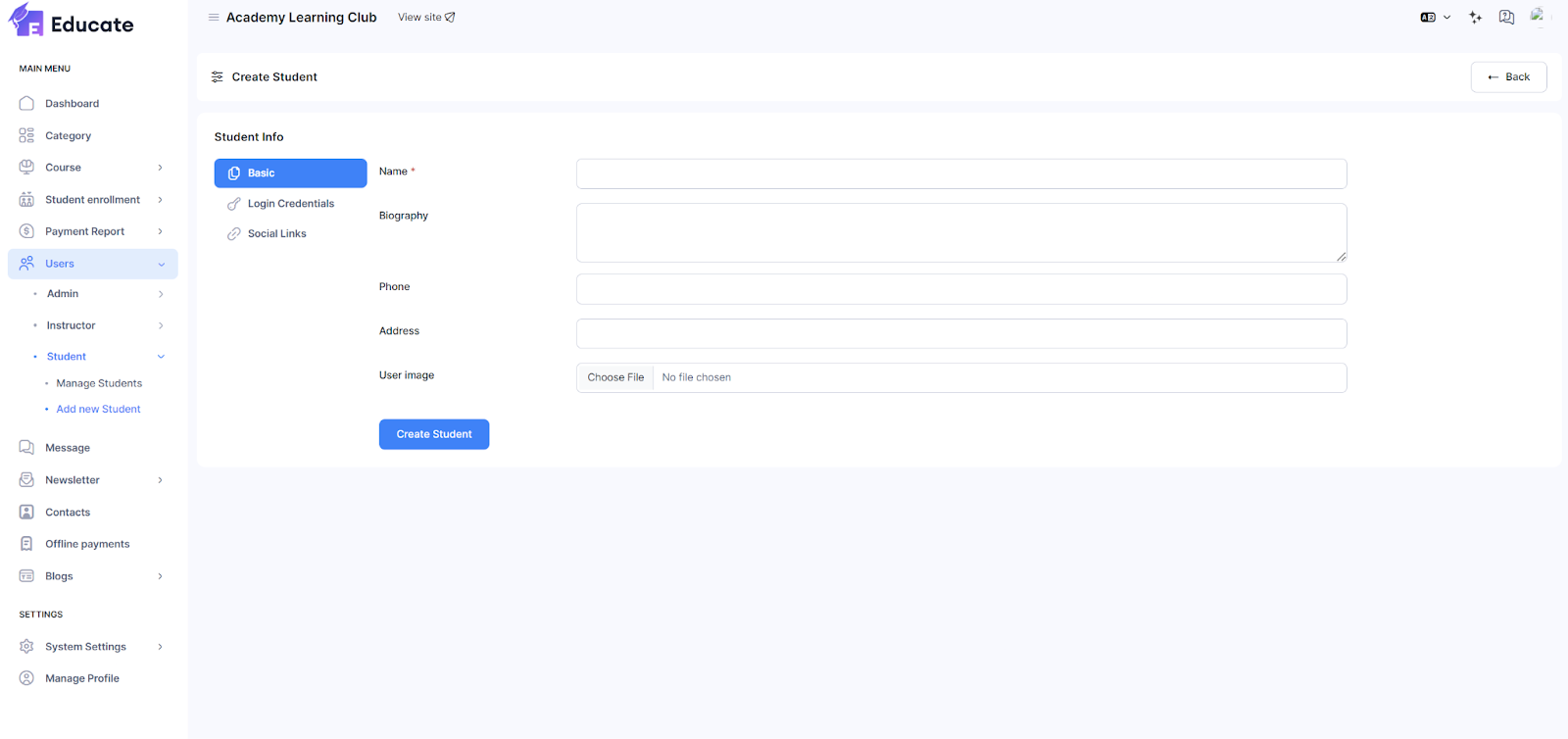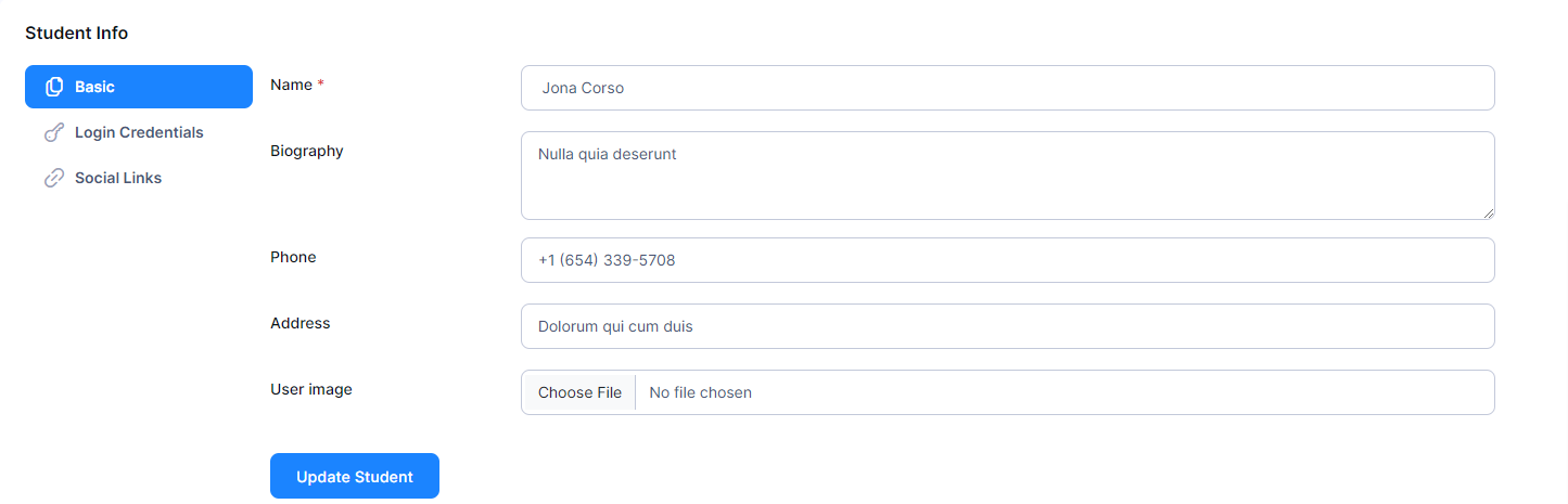 Next, click on the Choose File button and upload a User image of the student from your device.