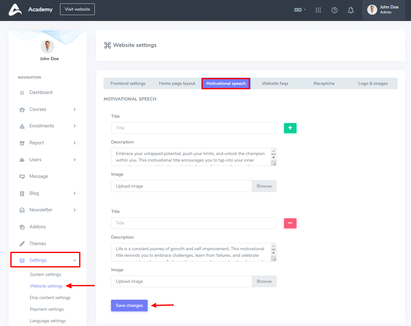 You can add some motivational speeches for your users in Academy. For this, you can follow the steps below.