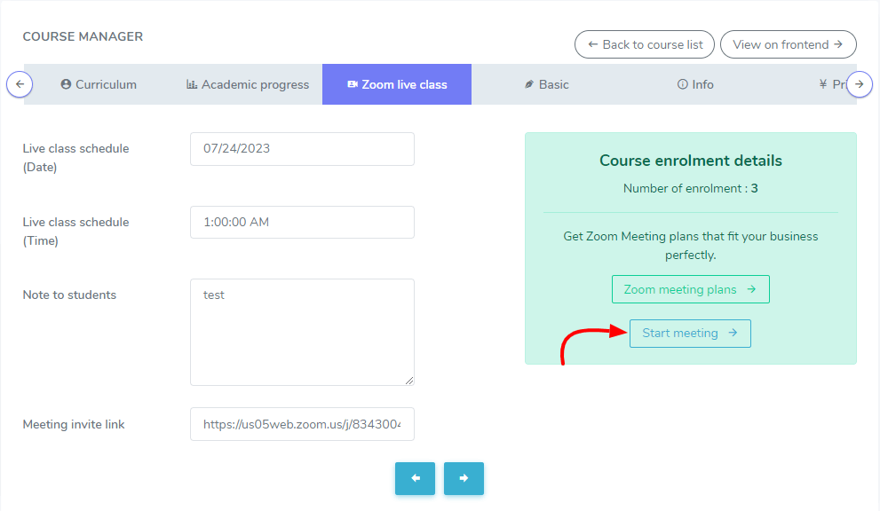The course instructor has to provide the meeting invitation link in the application. For this, they can follow the steps.