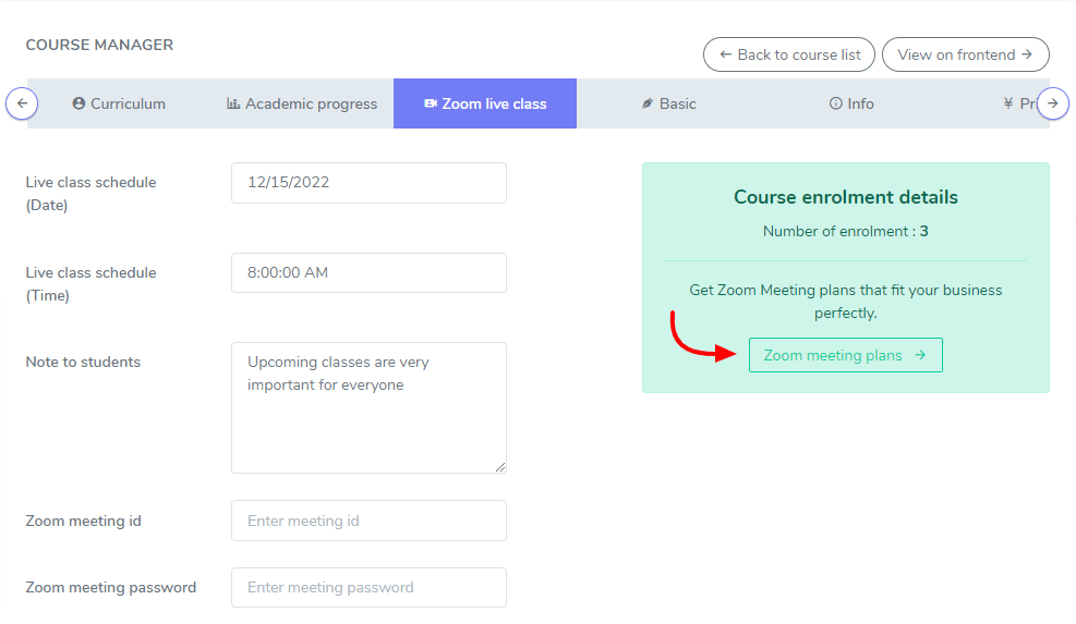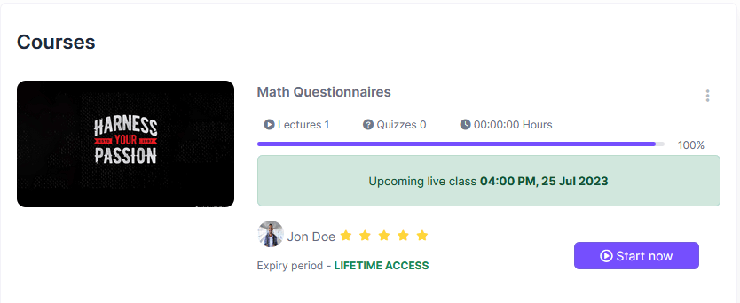 Get the feature of online live classes with the Zoom streaming service in Academy LMS. The course instructors can make real-time classes with their students through these live class addon.