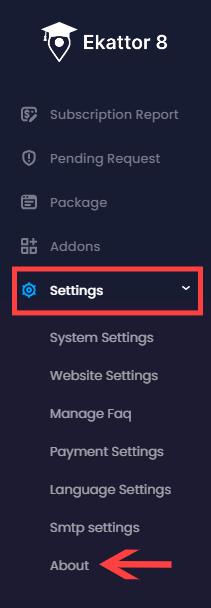 Before Installing this process we would recommend you to check your application version. For this, you have to navigate to the "About" section from the "Settings" button.