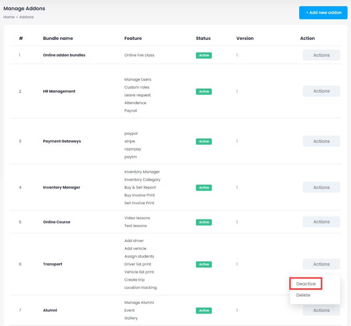 As a Superadmin you can deactivate this addon anytime. For deactivating this addon you can follow the steps: