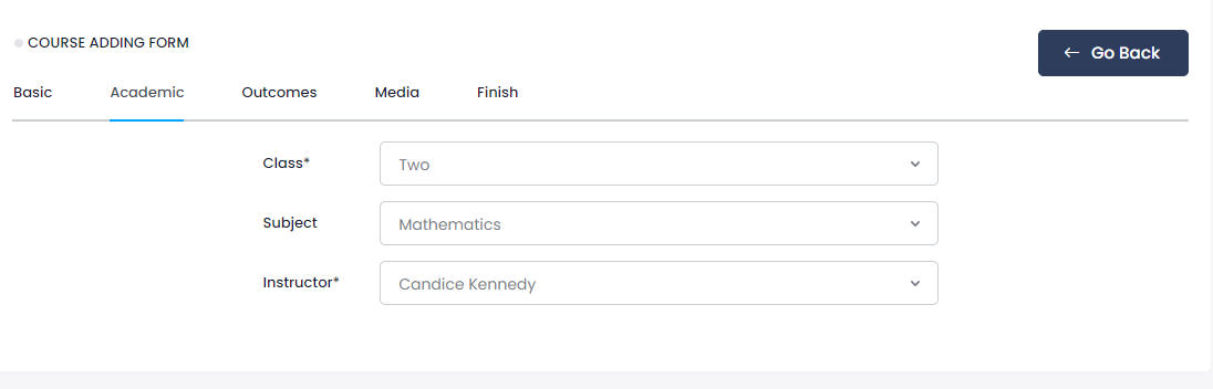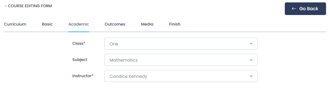 Academic: After updating the basic section you can update this academic section. Here you can edit Class, Subject & Instructor names according to your wish.