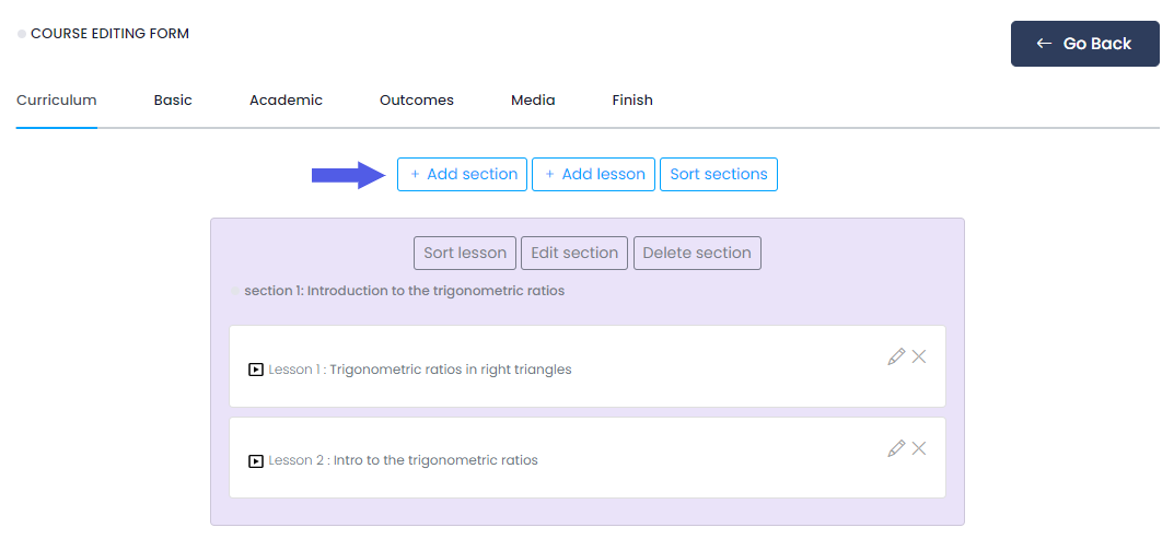 For organizing your lesson according to the syllabus, you can sort sections regarding your choice. For sorting section, you can follow the steps below;