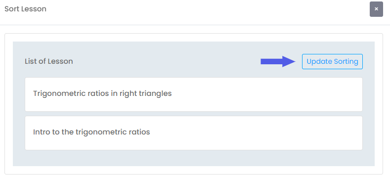 For organizing your lesson smoothly you can sort your lesson according to your choice. For sorting lessons, you need to click on the "Sort lesson" button.