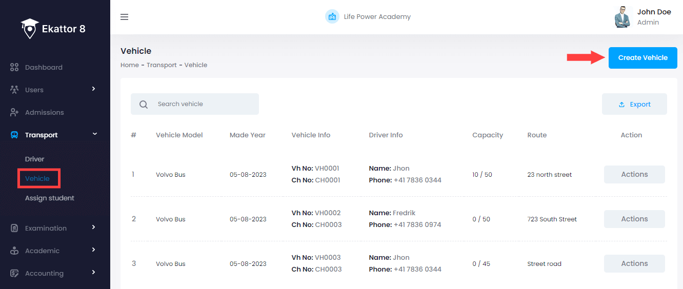 Unlock the feature of transportation management with Ekattor 8 Transportation Addon. With the help of this transportation addon, you can make your school's transportation system online and manage them easily. The school admin can add drivers and vehicles with detailed information, assign students to the vehicles, and parents can track the location of their student's school transportation at any time.