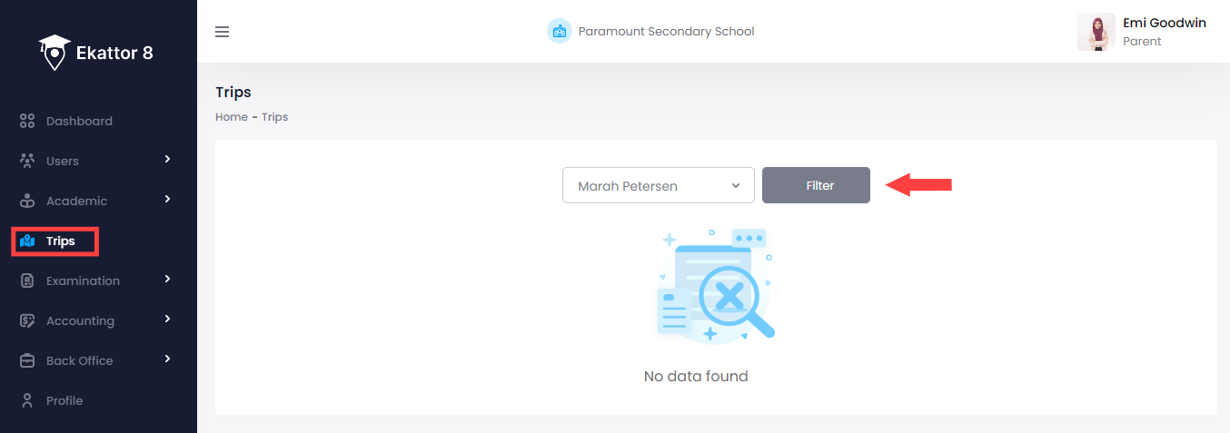 Parents can see their child's live location through this school transportation addon. To see the student's live location in the school transport, the parents can follow the steps below: