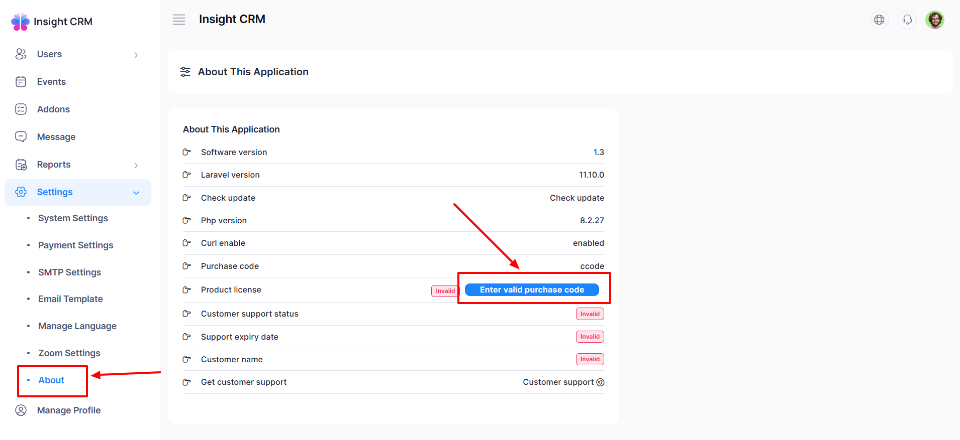 The About section of Insight CRM provides essential technical details like software version, Laravel version, PHP settings, and license information. Beyond the technicals, Insight CRM empowers businesses to streamline sales, manage leads, and nurture customer relationships, driving productivity, boosting conversions, and supporting sustainable growth through automation and actionable, data-driven insights.