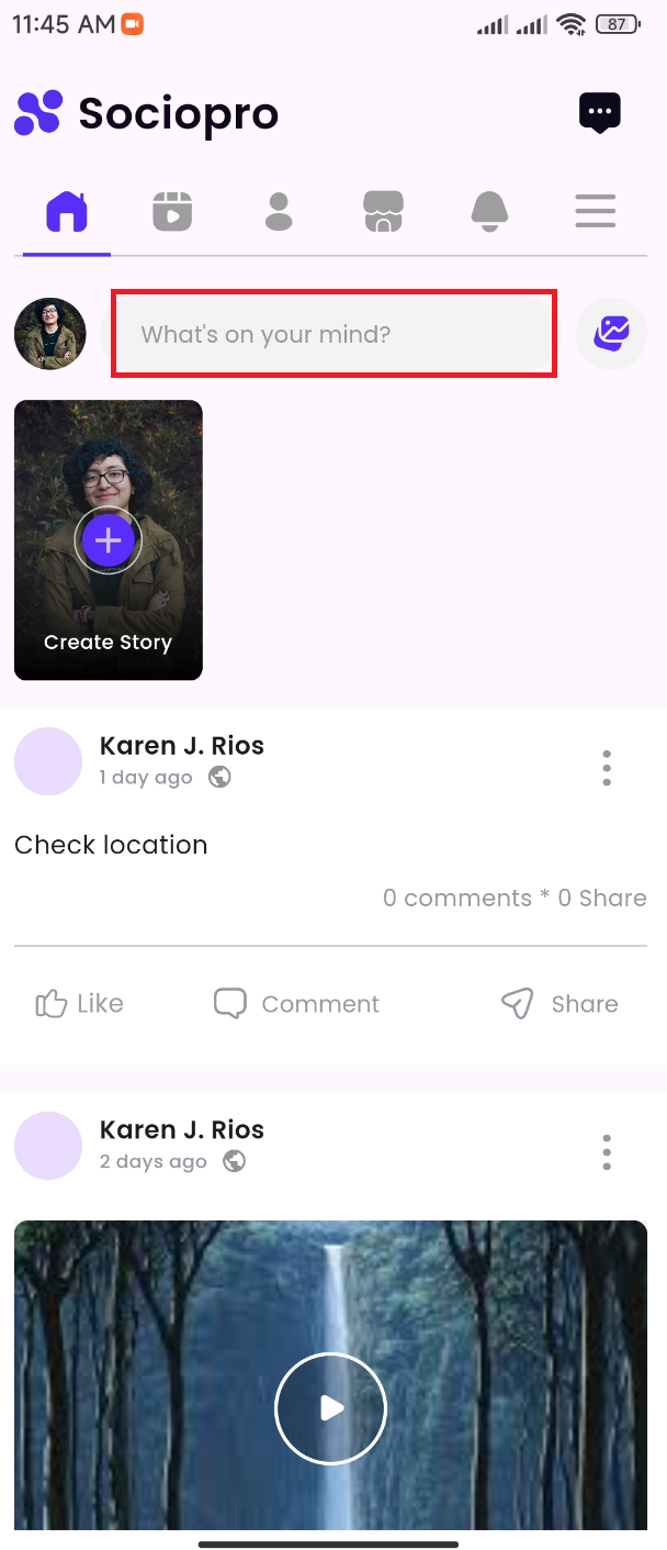 Users can share real-time experiences, news, or events with their friends or other users through live videos on Sociopro. When users end their live video, it automatically saves to their profile.