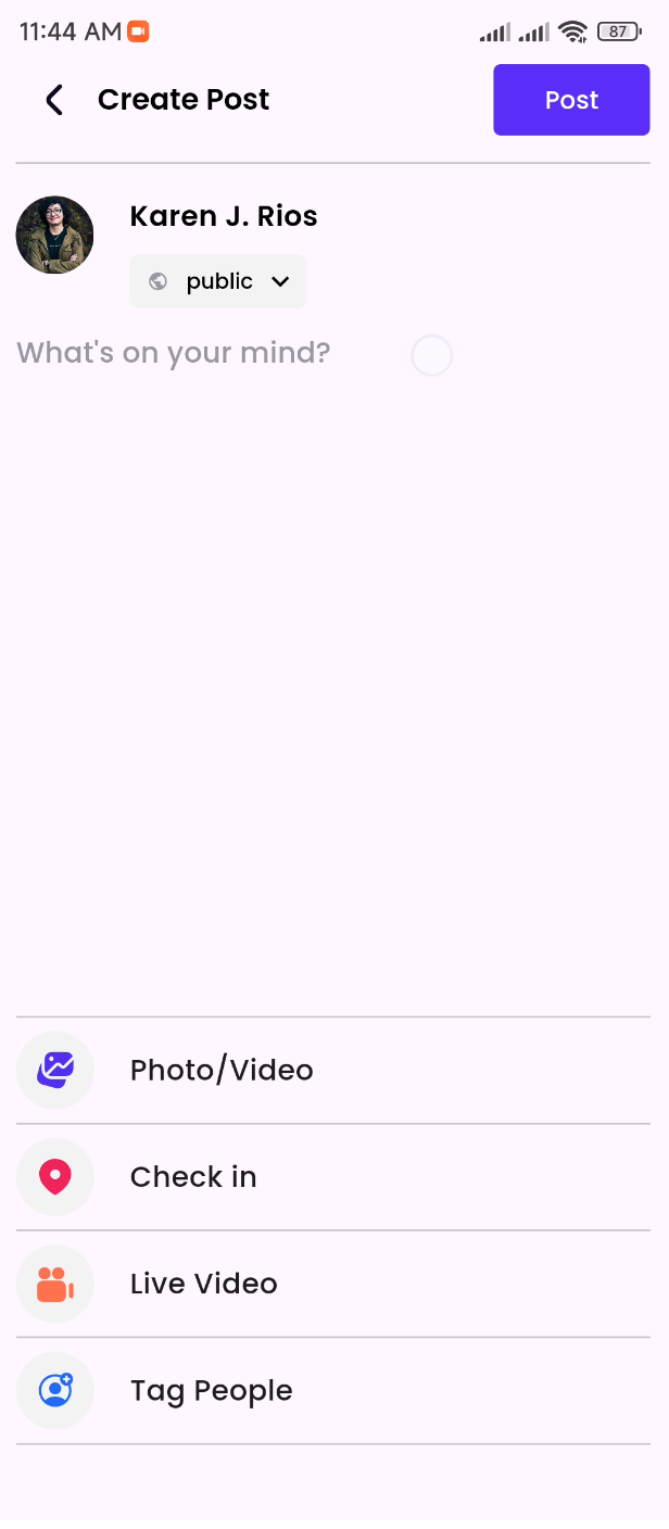 5. Choose the privacy of the post (Users can make their posts public or only friends)