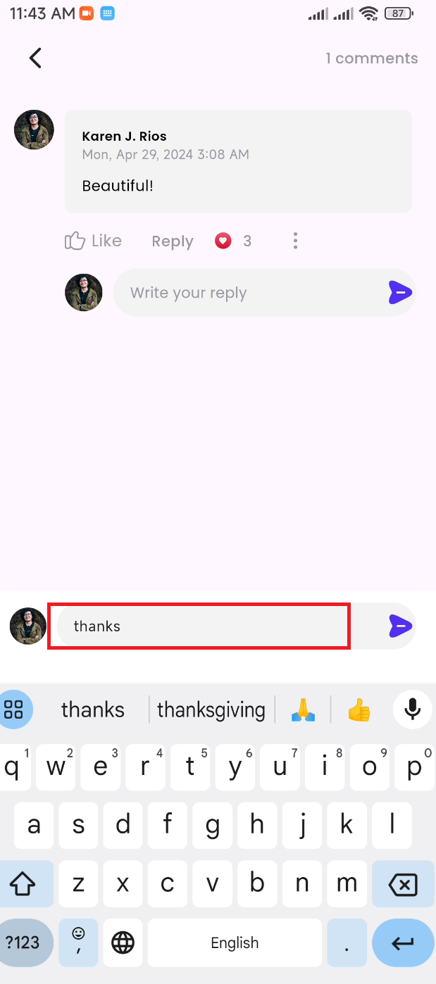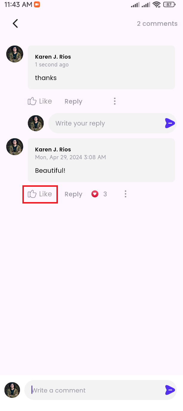 On Sociopro, users can interact with posts from friends, pages, or groups they follow or have joined by commenting and adding reactions. Users can leave comments and express their feelings using various emojis such as like, love, haha, cry and angry. Only one type of emoji/reaction can be used per post or comment at a time.