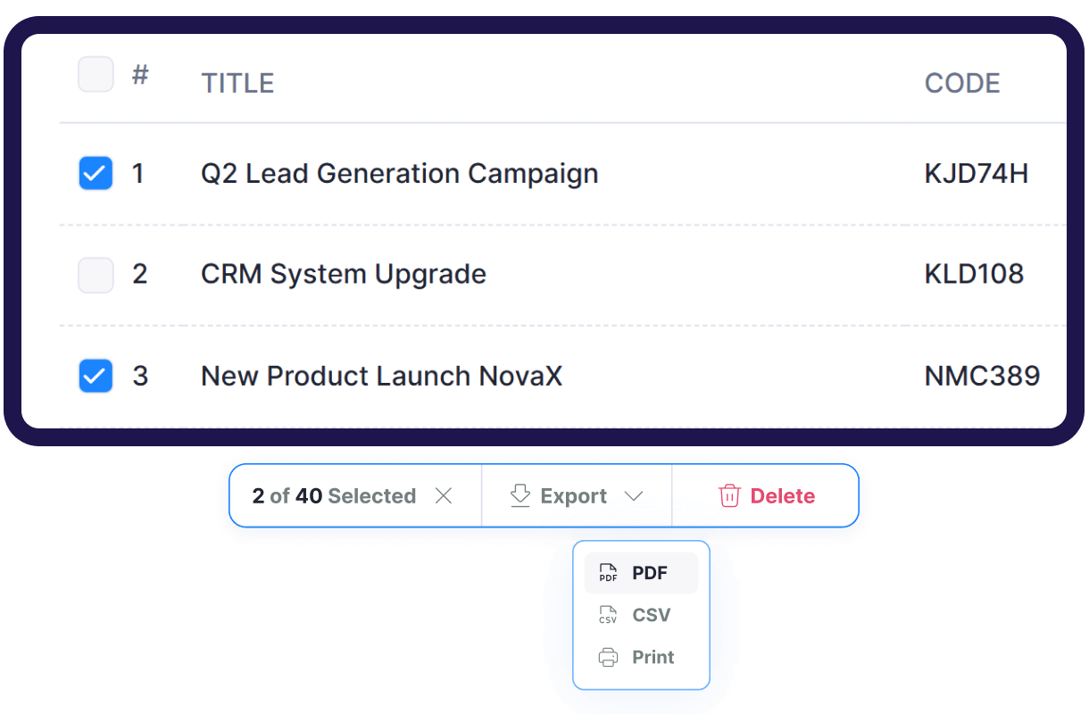 Effortlessly select multiple projects at once and perform actions like exporting or deleting, saving time and improving workflow efficiency.