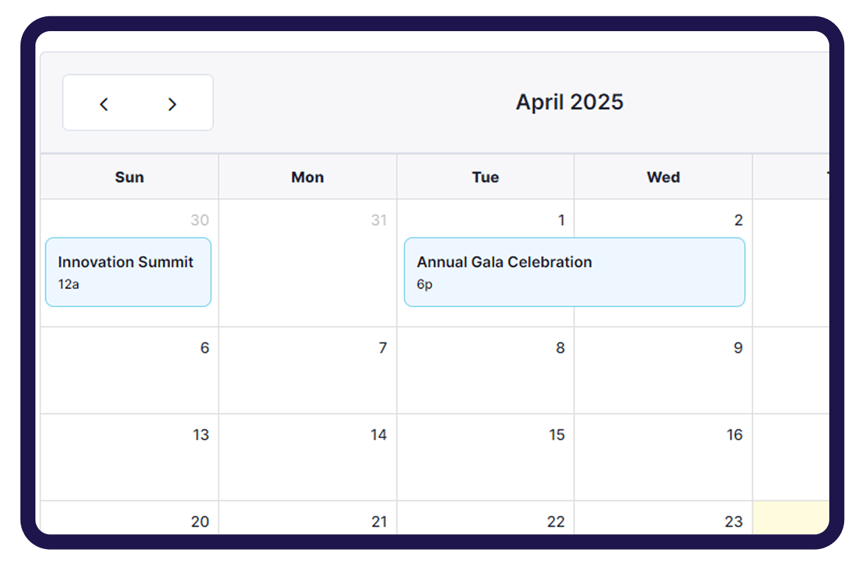 Insight CRM’s Event Calendar provides a clear view of past and upcoming events, offering detailed information for better planning and awareness.