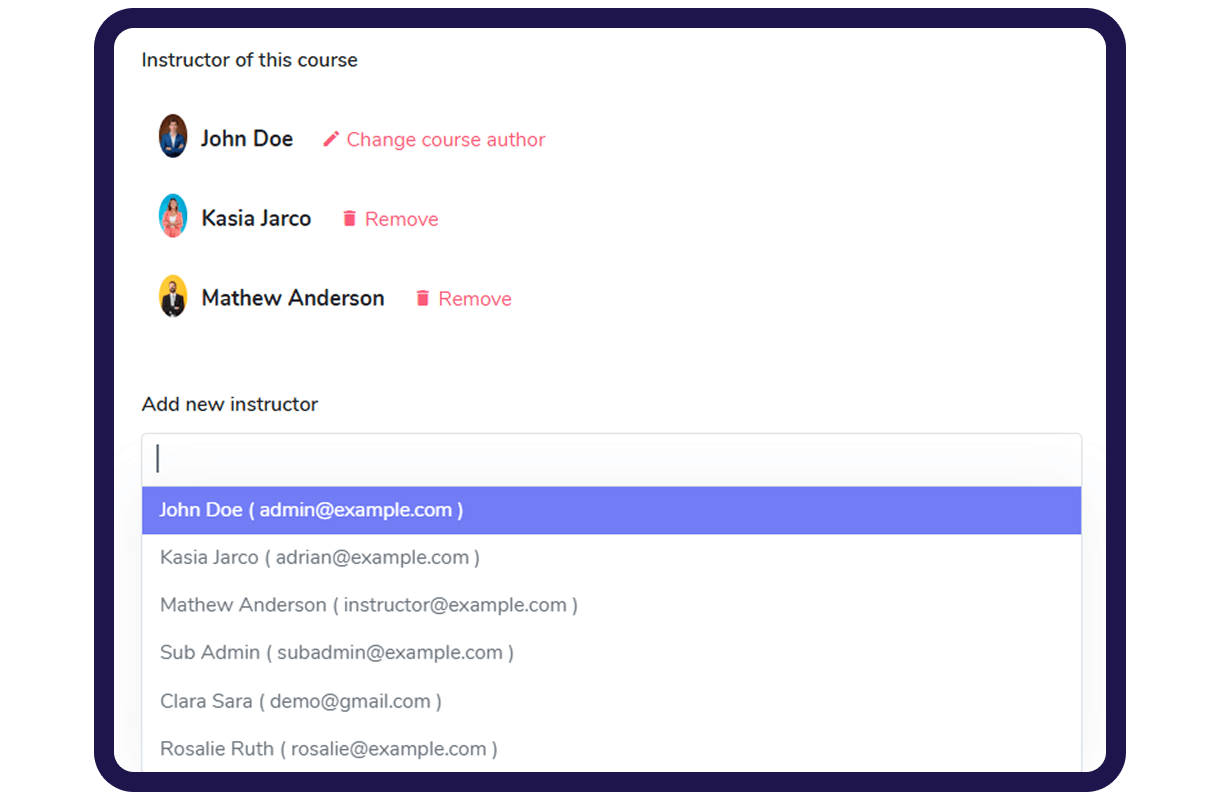Allows multiple admins with tailored permissions, ensuring secure and efficient management of courses, users, and platform operations.