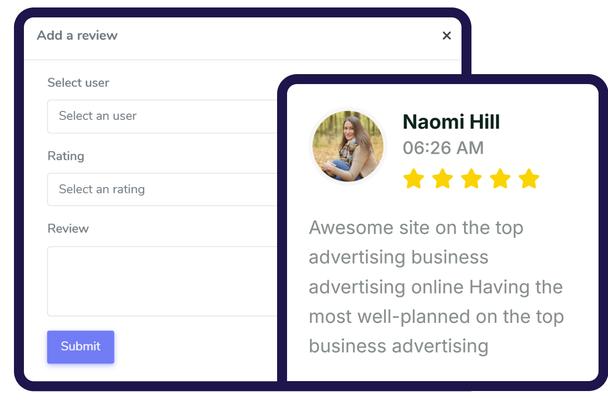 Admin can showcase personalized student reviews for applications, increasing credibility, engagement, and perceived value directly on the homepage.