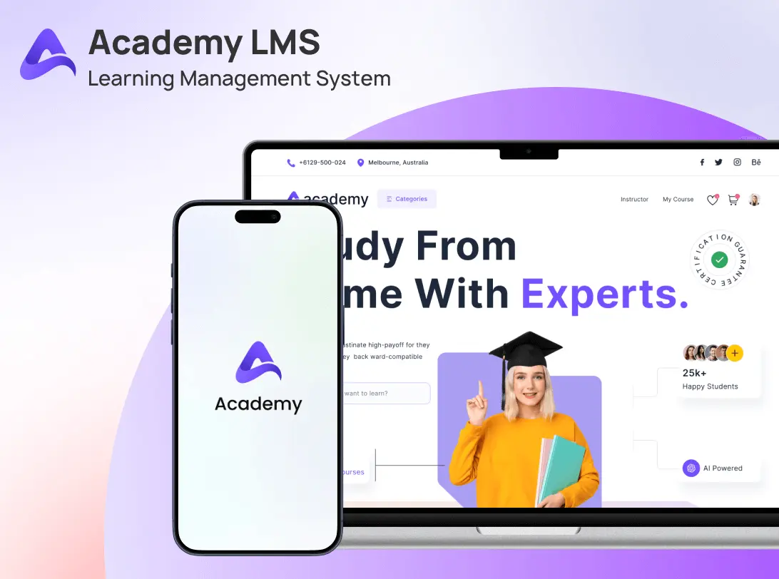 Academy LMS is an online course-based learning management system. This web application is designed for creating courses, selling courses to students, and managing web portals. Academy LMS is an online platform where the site admin and course instructors can create courses and make revenue by selling them to the students. On the other side, students can enrich their knowledge by purchasing courses from your application. In this course-based online educational platform. The course instructors can add videos, text, images, and documents as course materials.