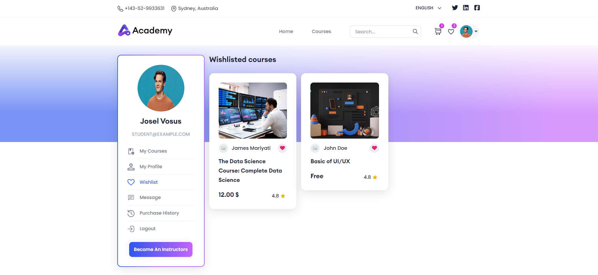 After you add courses to your wishlist, you can view them inside the Wishlist page.
