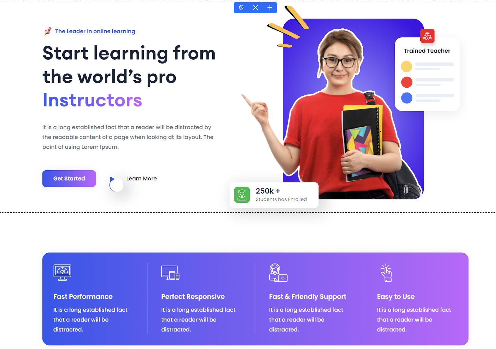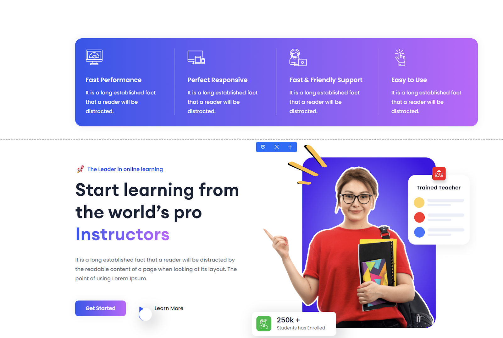Create your own customized home pages in Academy LMS Laravel with the custom homepage builder feature. Easily design and manage multiple pages on the Academy LMS Laravel homepage, and choose exactly how you want the homepage to appear.
