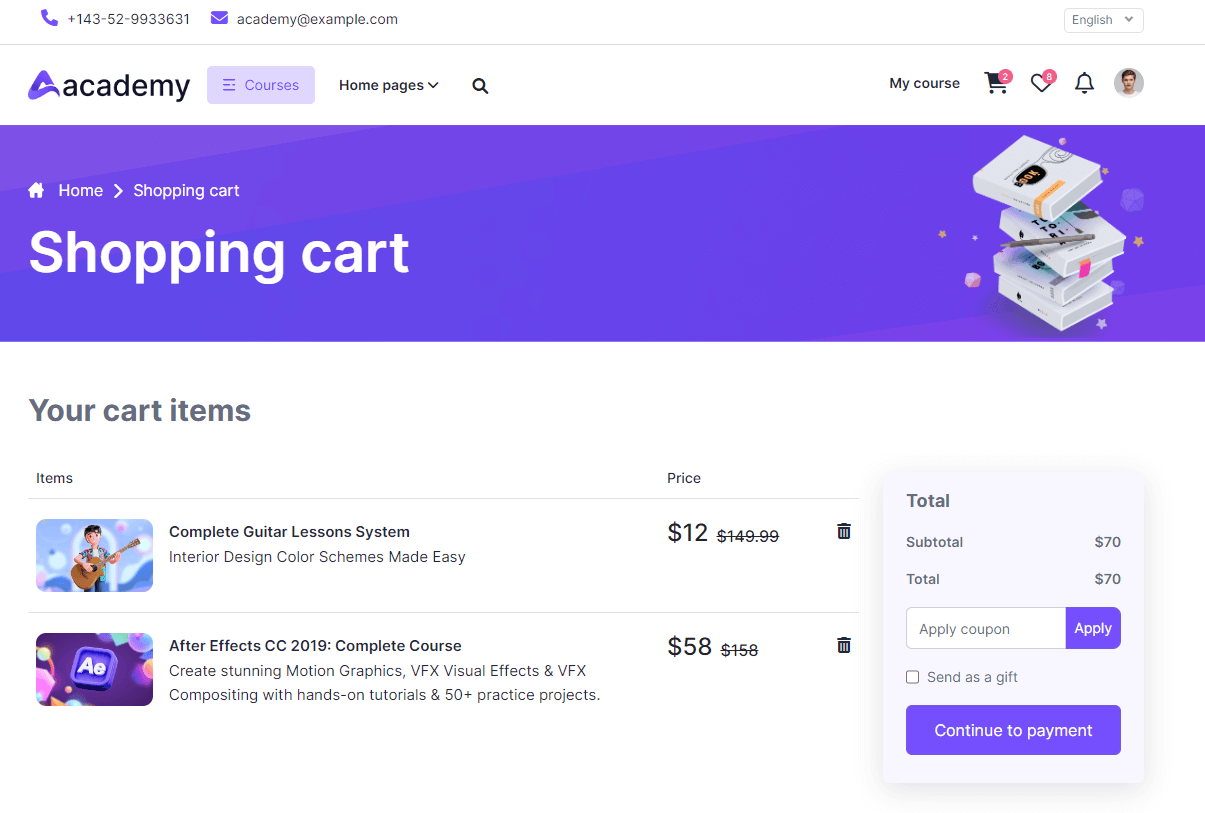 When users add their favorite courses to their add to cart, the cart page displays all the courses added to their add to cart.