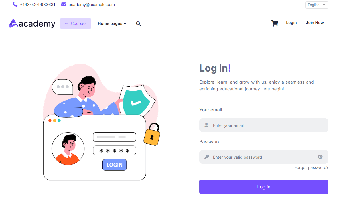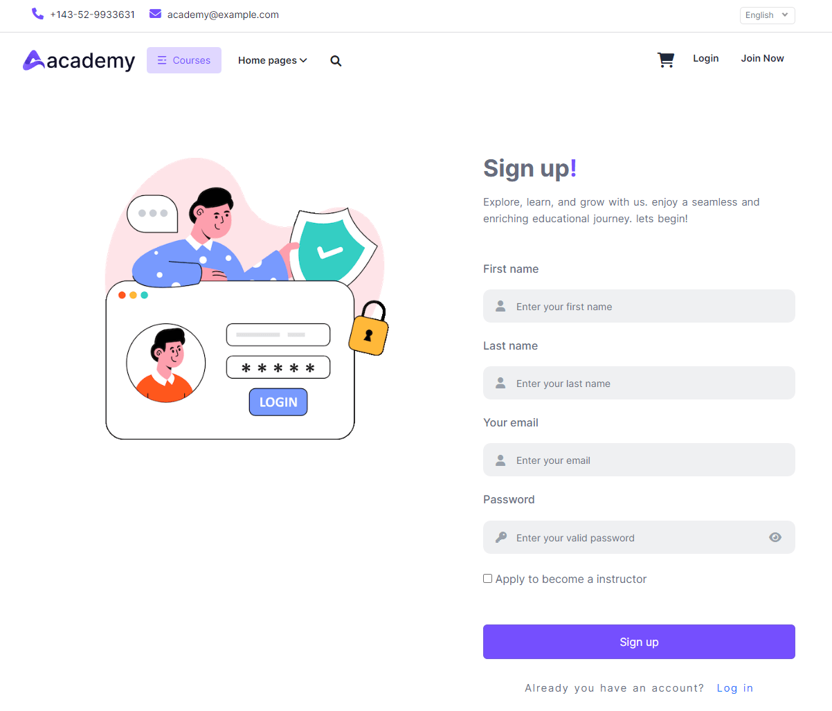 There are two buttons on the right side of the home page. the first is to log in. The second is to sign up. If a user already has an account, they do not need to sign up again. Users can purchase the course if they have an account.