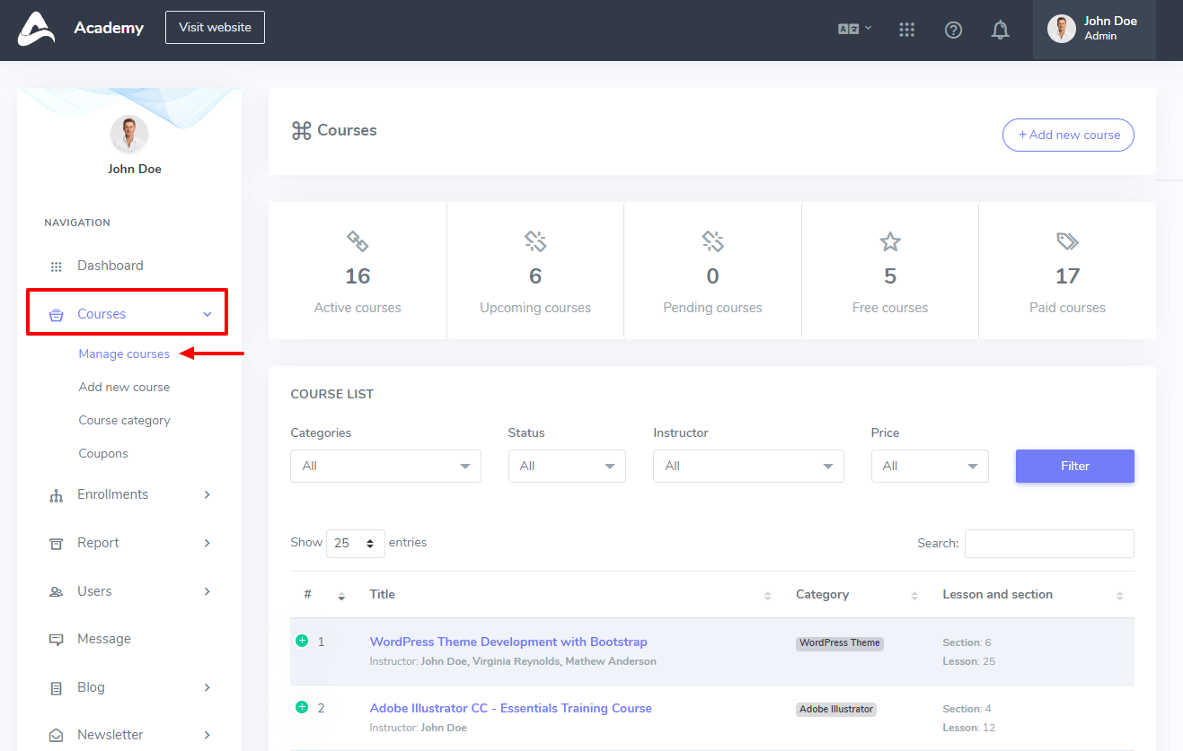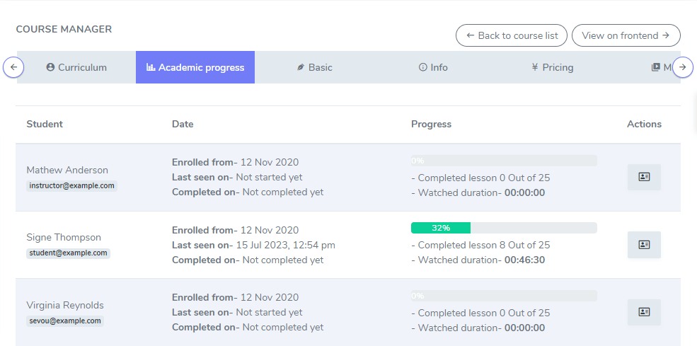 The course instructor can also see individual students' course progress from their panel. For this, the course instructor can follow the steps below.