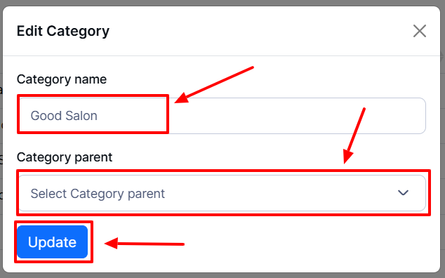 - Next, click the Action button (represented by three dots), and a menu will appear with the following options: Edit and Delete Category.