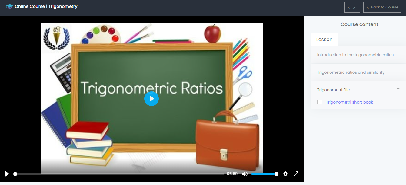 After clicking the continue button students can start to view lessons and can continue the learning.