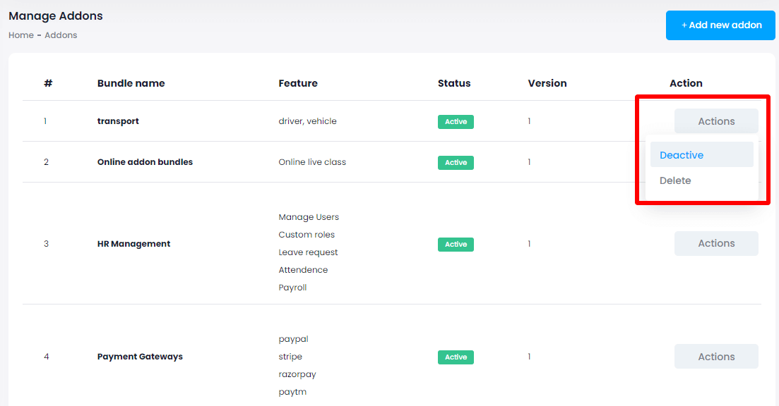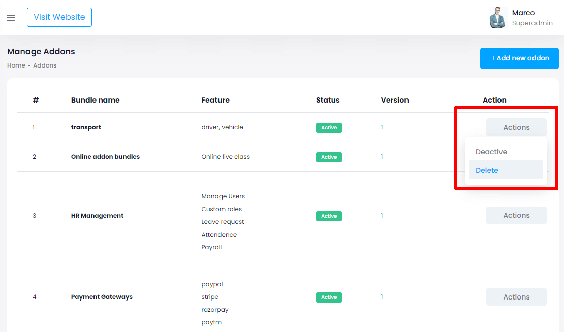 As a Superadmin you can deactivate this addon anytime. For deactivating this addon you can follow the steps: