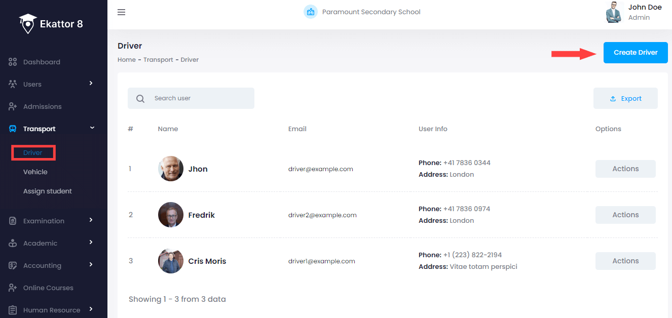 Unlock the feature of transportation management with Ekattor 8 Transportation Addon. With the help of this transportation addon, you can make your school's transportation system online and manage them easily. The school admin can add drivers and vehicles with detailed information, assign students to the vehicles, and parents can track the location of their student's school transportation at any time.