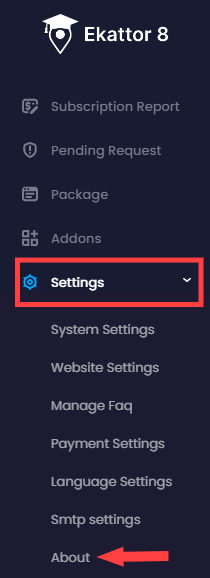 Before Installing this process we would recommend you to check your application version. For this, you have to navigate to the "About" section from the "Settings" button.