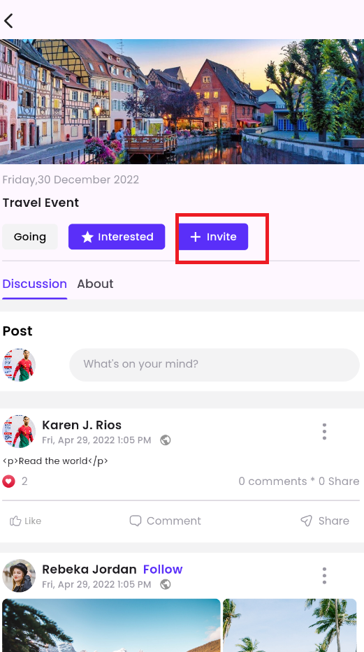 Users can also invite their friends to the events. For this, the users can follow the steps below: