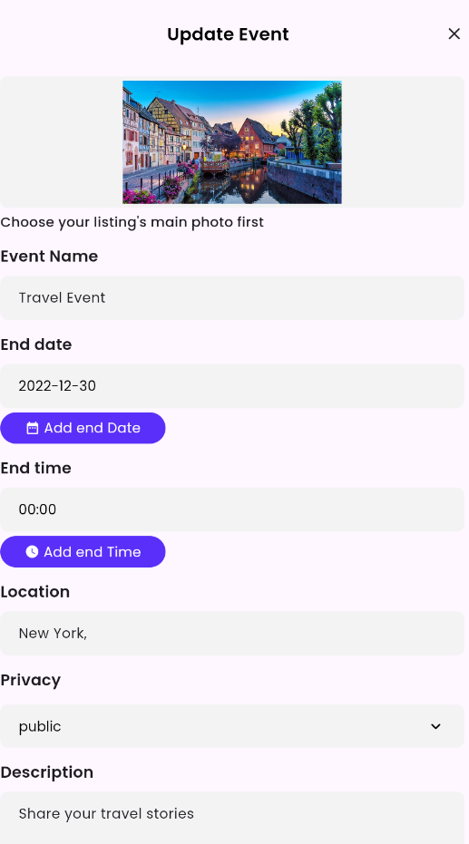 Users can easily access and manage their previously hosted events on Sociopro. They can update event details, such as time, date, and description, or remove events altogether from their account, all with just a few clicks.