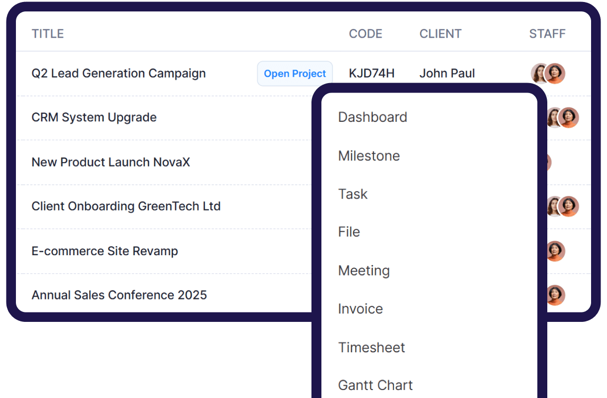Admins and clients can easily collaborate on projects through our built-in live meeting feature, enabling real-time discussions, faster decision-making, and seamless communication.