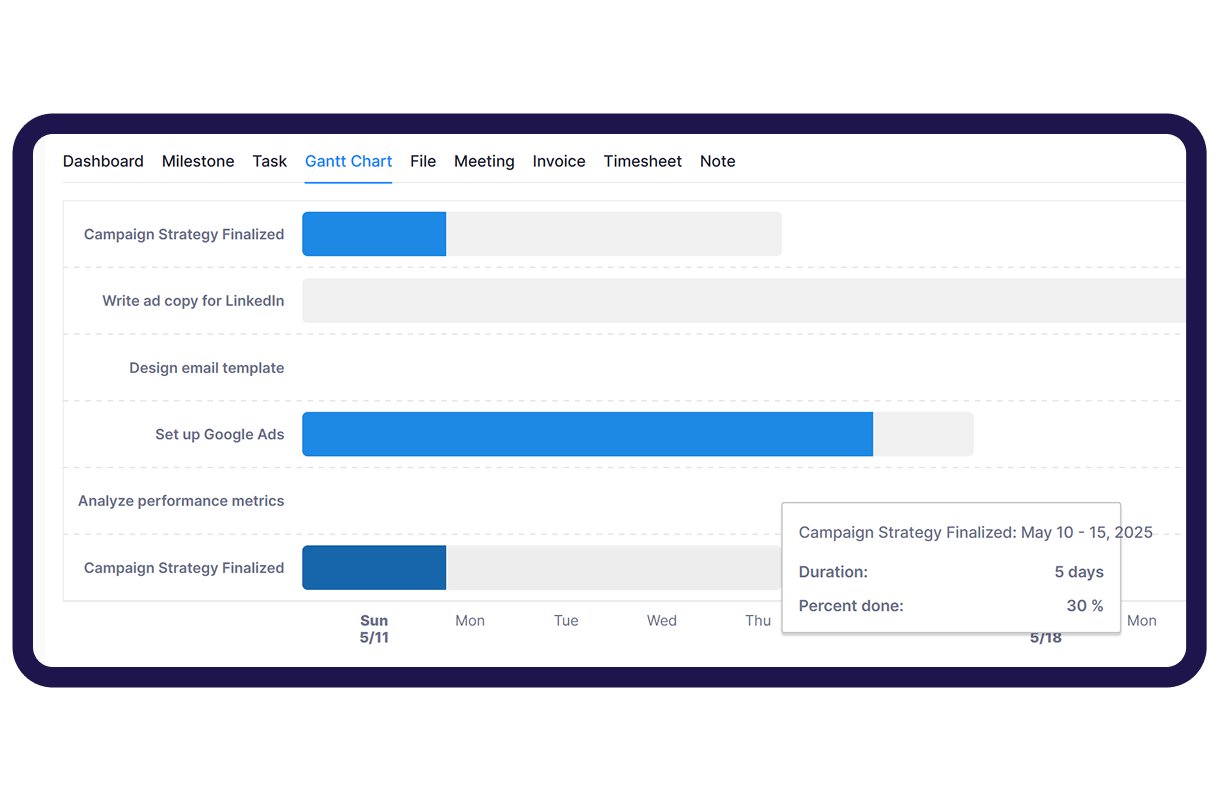 Gain real-time insights into project progress, task ownership, and deadlines with interactive Gantt charts designed to streamline team collaboration.
